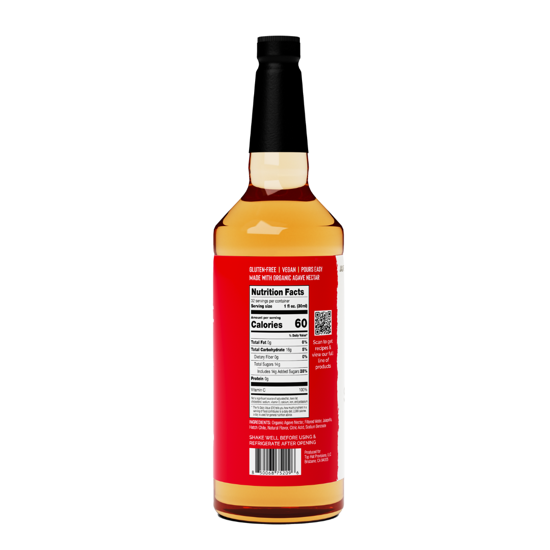 Ingredients: Organic Agave Nectar, Filtered Water, Citric Acid, (Spicy includes Natural Flavors, Jalapeño, & Hatch Chile), Sodium Benzoate