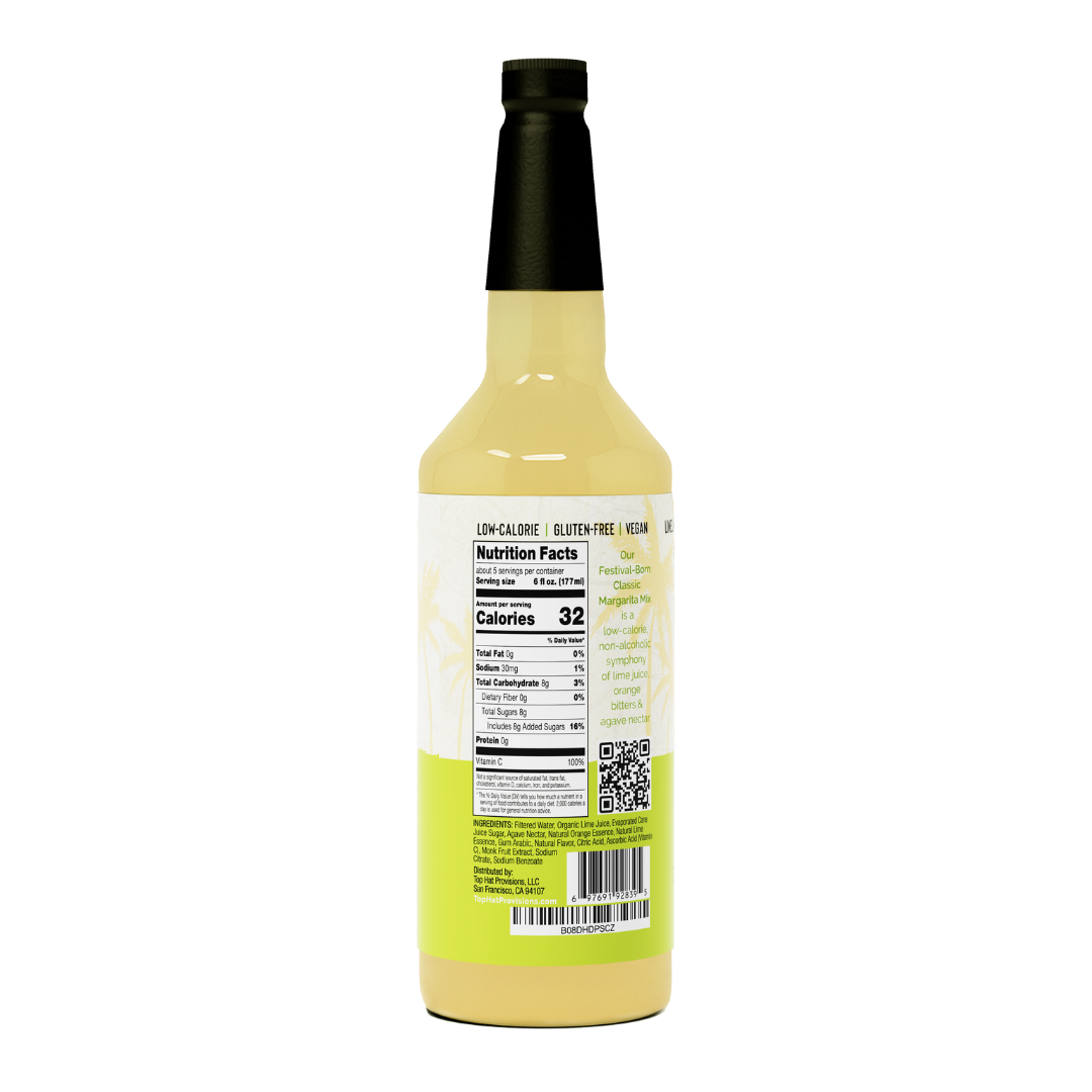 Craft the perfect margarita with Top Hat Classic Agave Lime Margarita Mix, a fan-favorite blend that delivers bold, handcrafted farm-to-glass flavor with fewer carbs and sugar. Made with cold pressed lime juice and organic agave nectar, this cocktail mix is ideal for creating fresh, premium margaritas at home or batching for larger events. Whether you’re health-conscious or simply enjoy a refined cocktail, this mixer brings farm-to-glass quality in every pour.