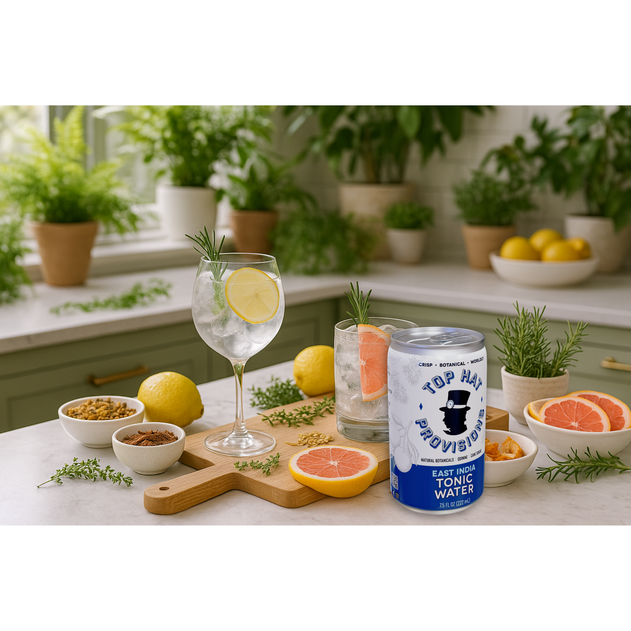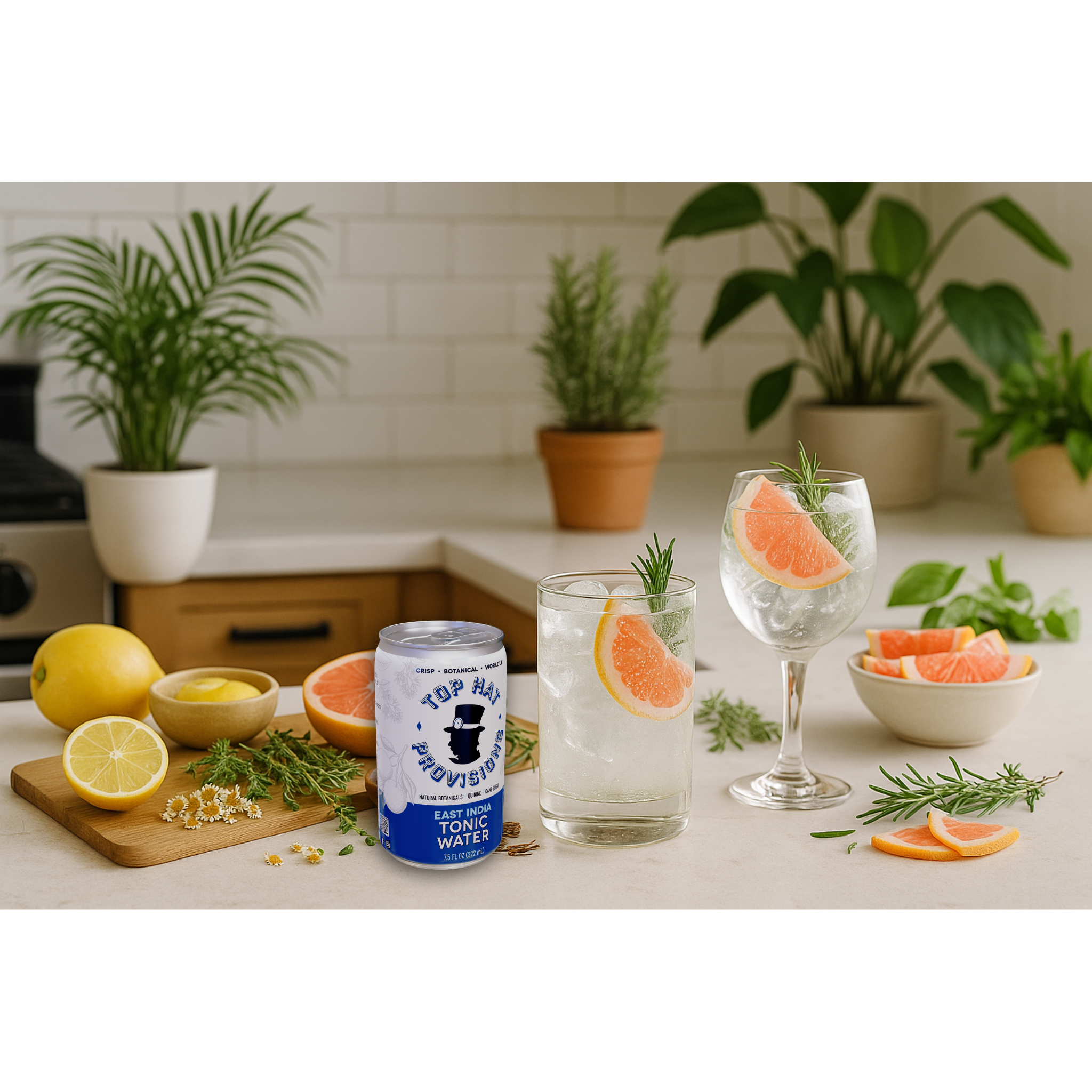 Top Hat East India Tonic Water is an ultra-premium small-batch tonic water and G&T Mix made with Quinine from Cinchona Bark, Yuzu, Grapefruit Peel, Darjeeling Tea, and Chamomile. Sustainably sourced and bittersweet by design, it’s crafted for G&Ts but sublime solo over ice. No artificial preservatives, flavors or colors.