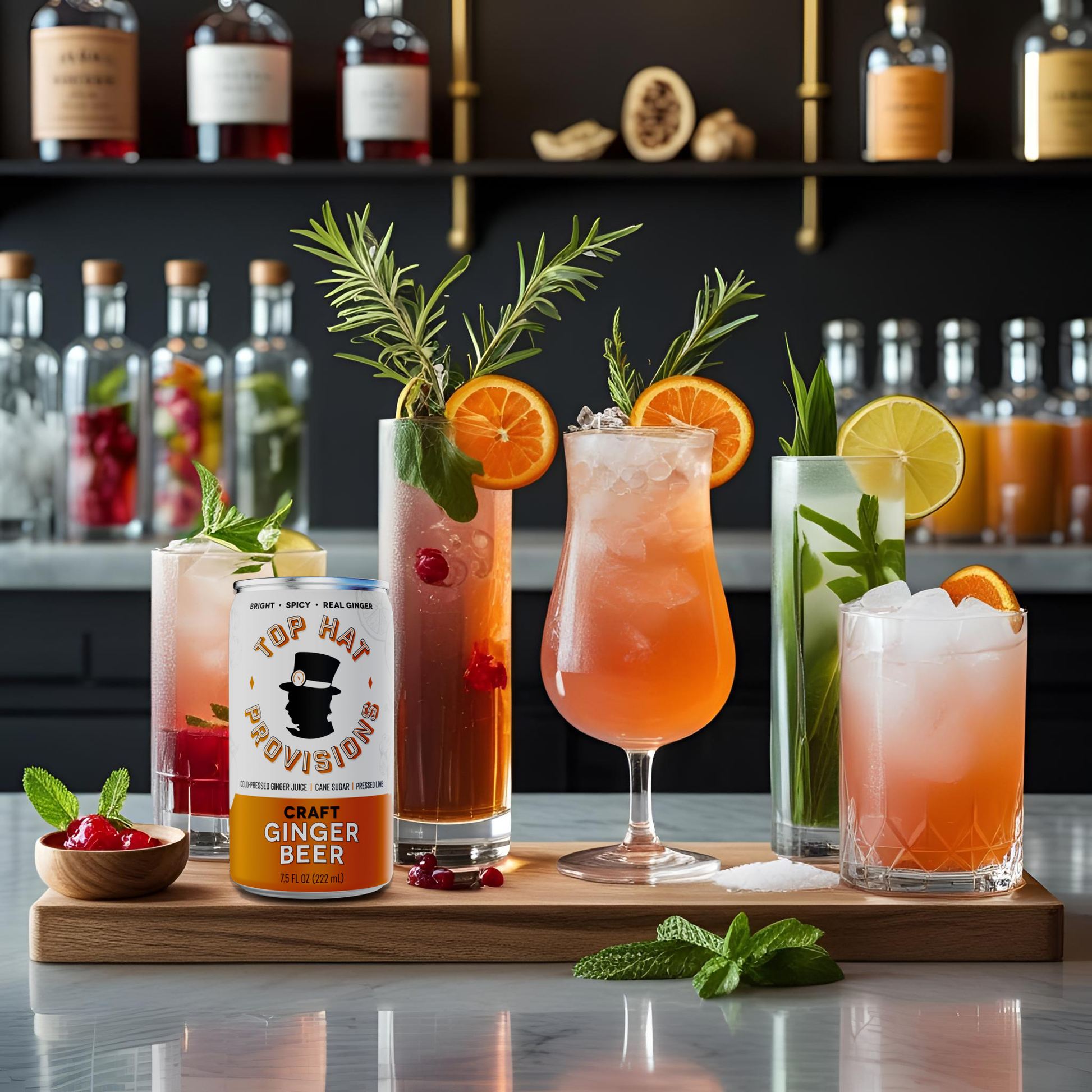 Top Hat Craft Ginger Beer is an ultra-premium small-batch craft soda & Mule Mix made with cold-pressed ginger juice, pressed lime juice, pure cane sugar and apple cider vinegar for a bold, spicy kick that’s naturally vibrant. No shortcuts—just farm-to-glass flavor that’s gluten-free, vegan, and crafted with nothing artificial for ginger lovers who demand authenticity.