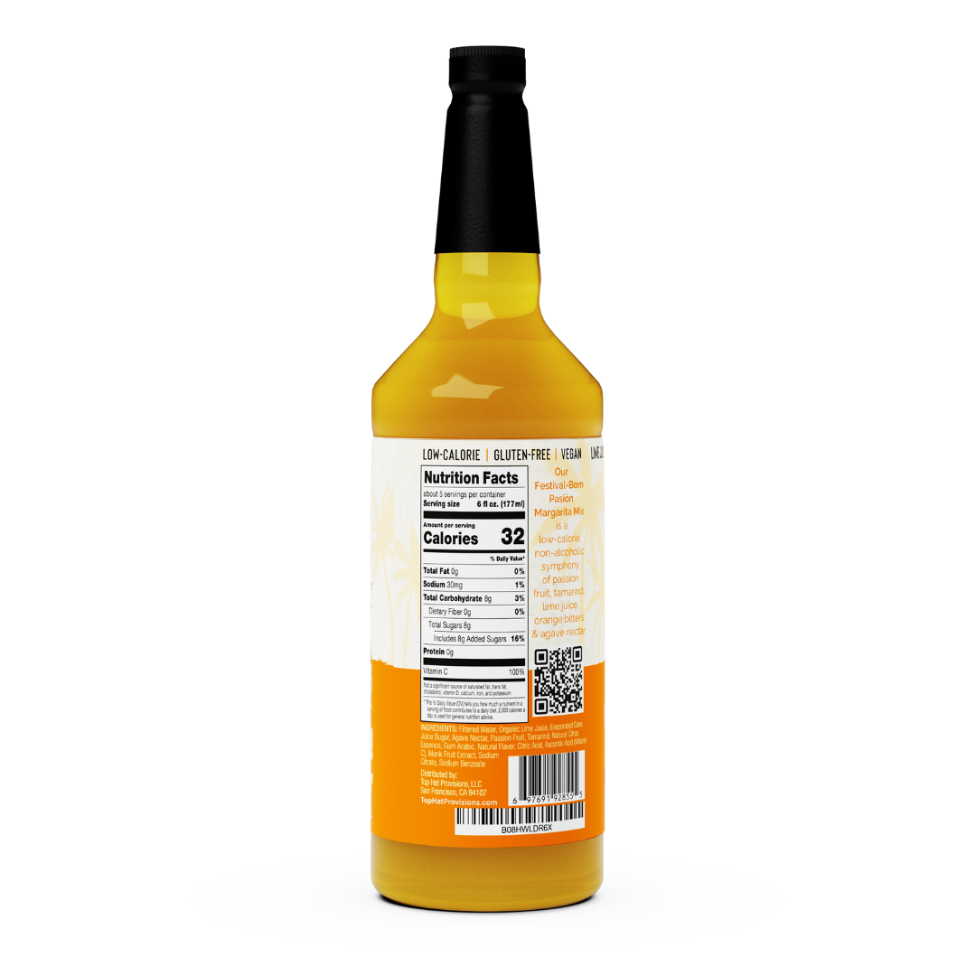 Top Hat Passion Fruit Margarita Mix is an award winning ready to mix ultra premium craft mixer made with organic agave nectar, cold pressed lime juice & natural passion fruit puree. This mix is ideal for making passion fruit margaritas at home or batching for larger events. Whether you’re health-conscious or simply enjoy a refined cocktail, this mixer brings farm-to-glass quality in every pour.