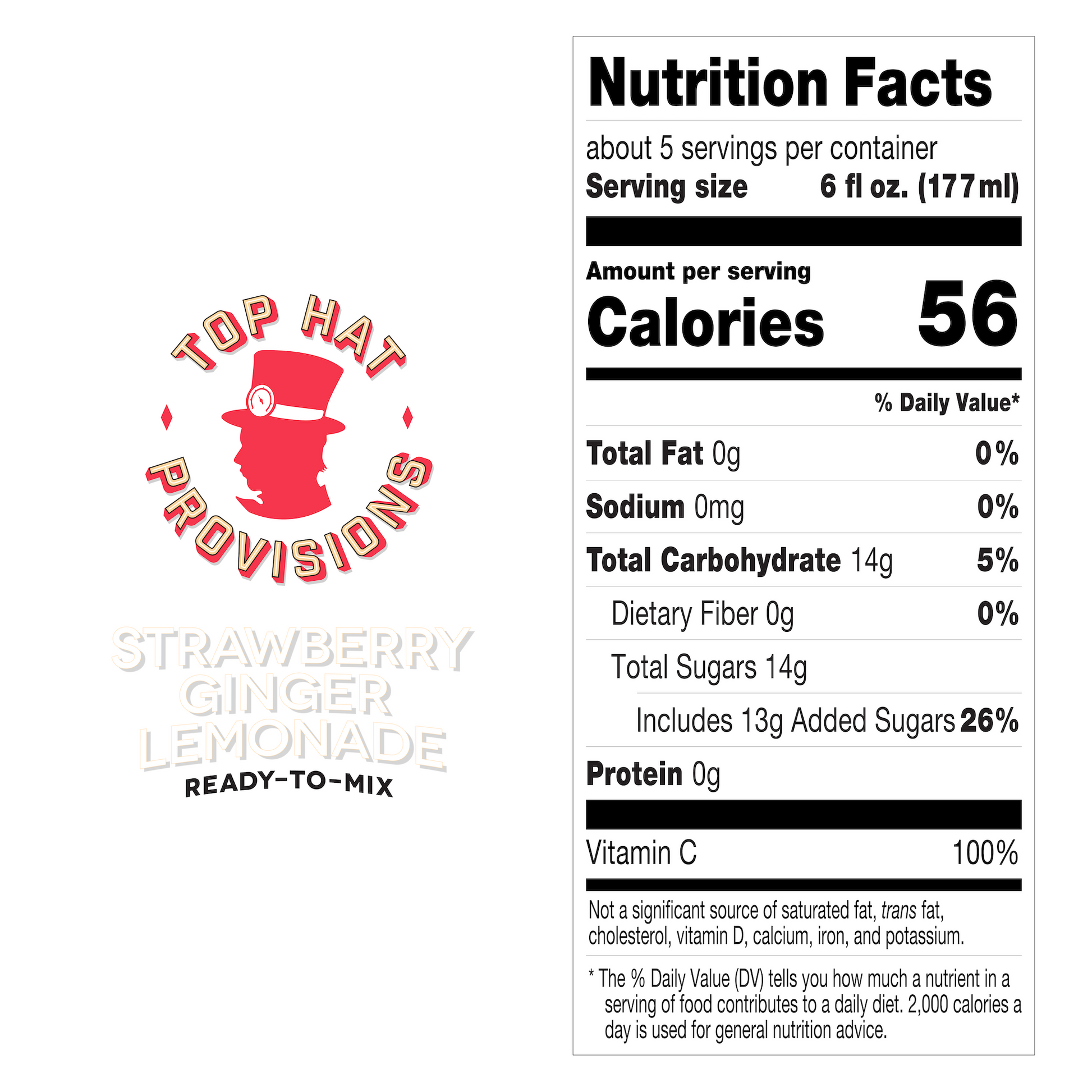 - Crafted for Mixologists by Mixologists: We have batched tens of thousands of Top Hat Strawberry Ginger Lemonades ourselves at music festivals, large venues & for busy bars and restaurants all over the world. We know what it's like and we are here to support you. We have shared over 100 of our favorite cocktail batching recipes online for you to play with (including both spirited and alcohol free cocktail recipes)