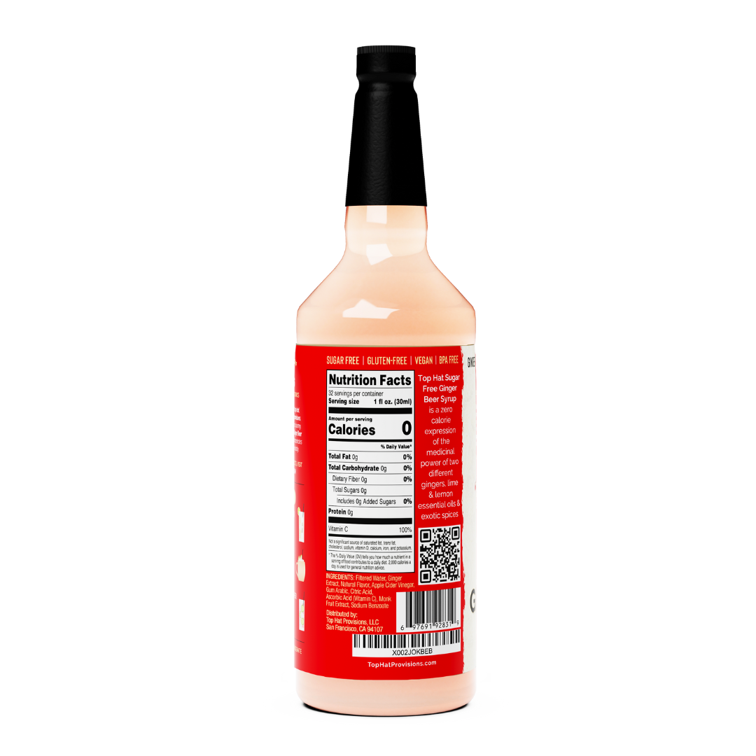 Top Hat Keto Sugar Free Diet Ginger Beer Syrup is a handcrafted with Organic Monk Fruit & Organic Ginger Extract. This ultra-premium concentrate delivers farm to glass flavor without the calories.